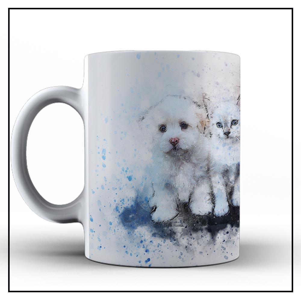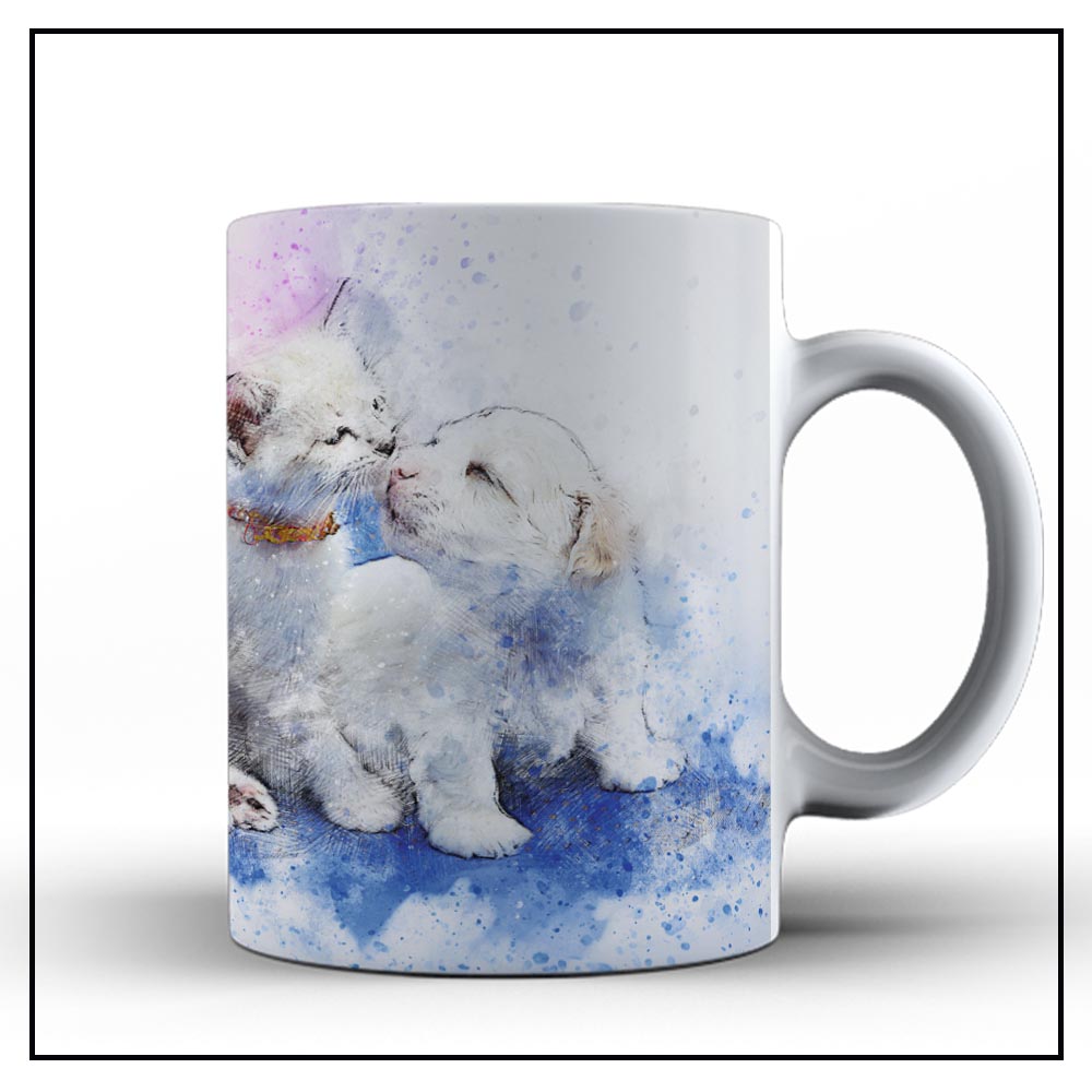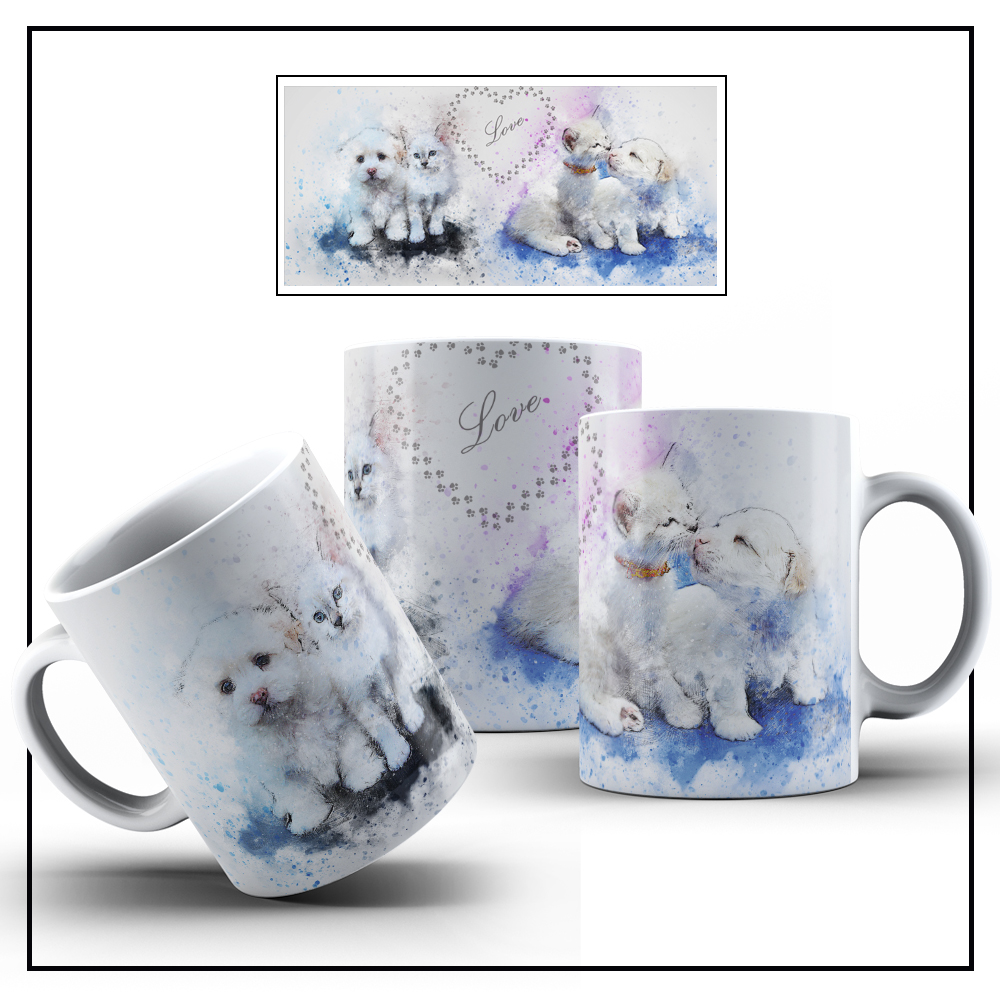 Caneca de Cerâmica Cães e Gatos Love. Escolha sua imagem, logo da sua empresa, foto e personalize sua caneca. Ideal para brindes, lembranças, presentes…