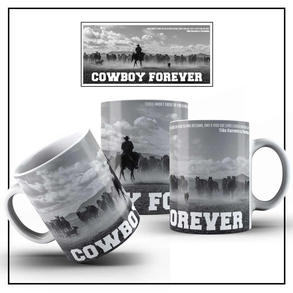 Caneca de Cerâmica Cowboy Forever. Escolha sua imagem, logo da sua empresa, foto e personalize sua caneca. Ideal para brindes, lembranças, presentes…